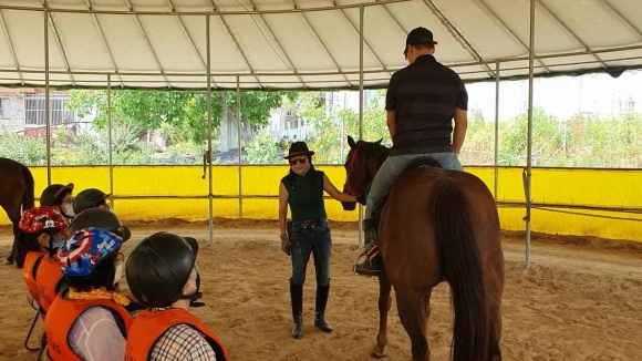 | (사)경북지체장애인협회 김천시지회(지회장 박희만)는 6월 5일(금) 개령면 김천은호승마클럽에서 그동안 코로나19로 연기되었던 『고삐 풀go! 스트레스 풀go! 재활 승마 교실』 개강식을 가졌다.