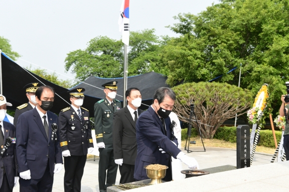 코로나19 어려움 속에서도 선열들의 위국헌신 정신을 기리고 보훈의 의미와 가치를 더해 작지만 큰 추념식으로 치러졌다.