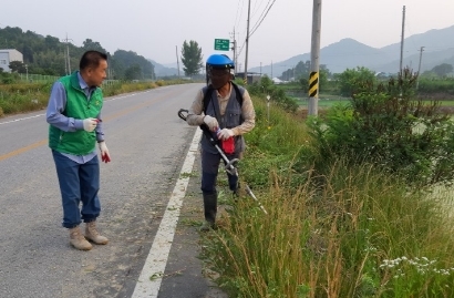 | 어모면(면장 이병헌) 새마을남․여지도자협의회(회장 박천길, 부녀회장 주영화)는 지난 6월 8일(월) 본격적인 여름철을 앞두고 Happy together 청결운동의 일환으로 연도변 풀베기 작업을 실시했다.