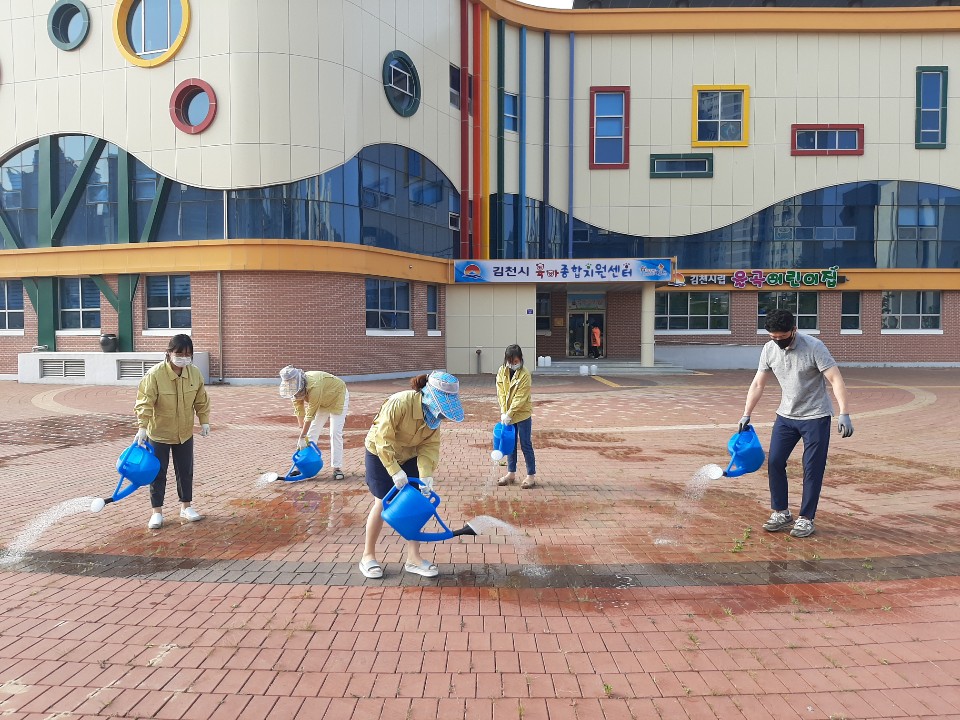 김재천 가족행복과장은 “김천시 육아종합지원센터는 시설전체가 친환경제품으로 시공되어 있고 마당과 풀밭까지 친환경으로 잡초제거를 하여 아이들이 직접 푸르름을 보고 만지고 느끼기에 안심이 된다.”며 “더불어 철저한 방역과 코로나19 대응 지침 준수로 보다 안전하게 시설을 운영하겠다” 고 말했다.