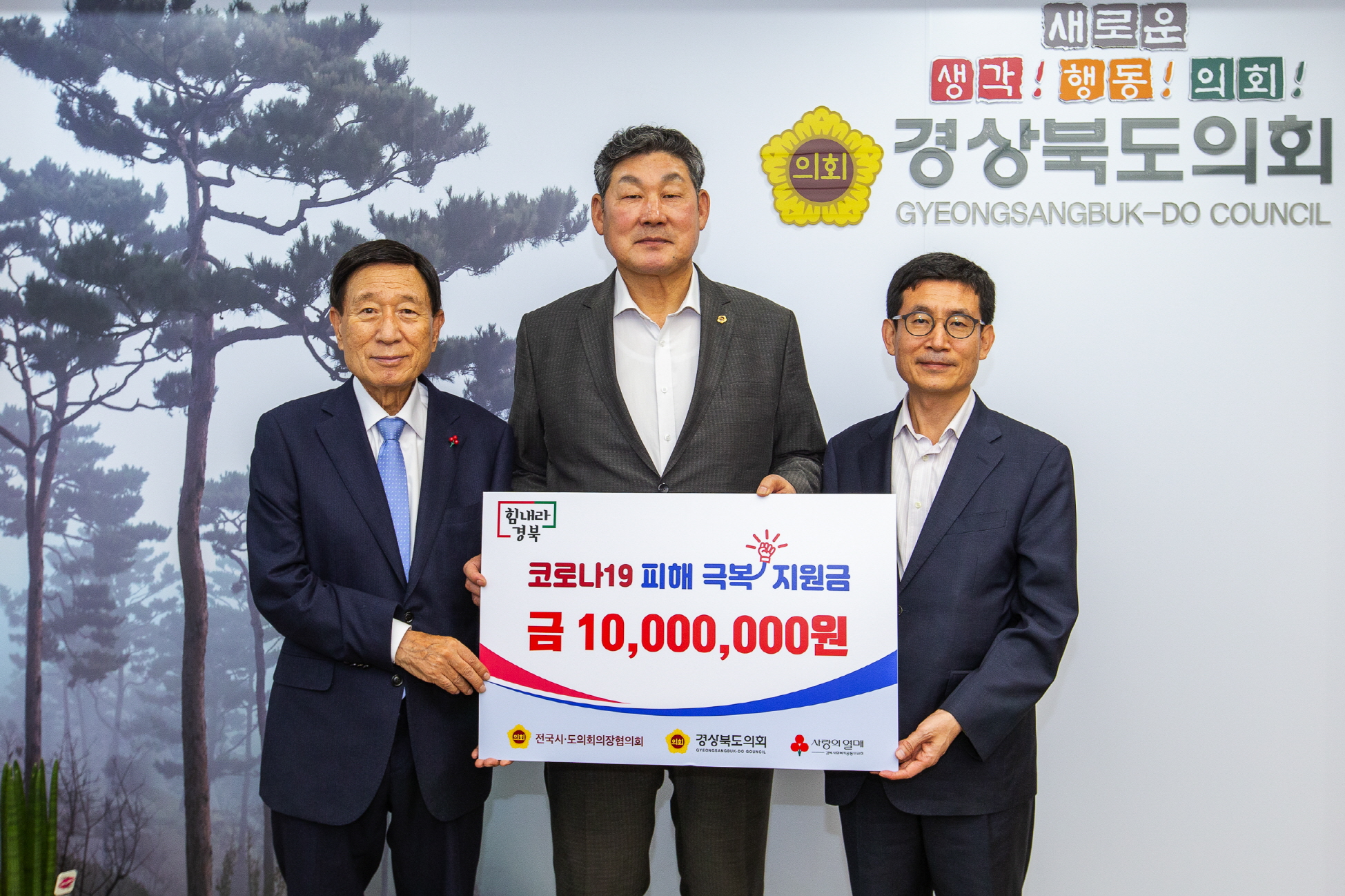 | 경상북도의회(의장 장경식)는 6. 10(수) 도의회 의장실에서 전국시‧도의회의장협의회가 지원하는 코로나19 극복 2차 재난구호금 1천만원을 경북사회복지공동모금회에 전달했다.