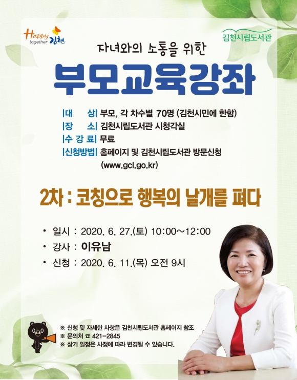 김천시립도서관, 2차 부모교육 강좌 참가자 모집