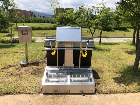 이번에 설치한 에어건은 공원 및 산책로 여건을 고려해 동일성능 대비 낮은 압력으로 소음피해를 방지할 수 있는 안전한 에어건 2구(1세트)형으로 제품을 선정했다. 하지만 유아, 어린이가 사용할 경우 주의가 요구된다.