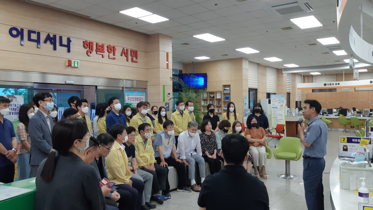 박운용 열린민원과장은" Happy Together운동 동참 및 민원실을 찾는 시민들에게 항상 친절한 미소로 민원인들을 맞이하기를 당부하고, 청렴실천은 윗사람이 먼저 바르게 행동해야 아랫사람도 본받아 잘한다는 상탁하부정(上濁下不淨)을 강조하면서 청렴실천과 함께 민원서비스 제공에 최선을 다하겠다."고 말했다.