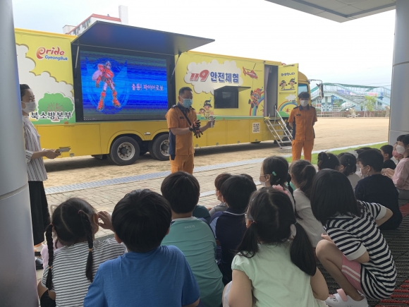| 김천시 김천다수초등학교(교장 김한수)는 지난 6월 12일(수) 1,2학년을 대상으로 119 소방대원들이 운영하는 이동안전체험을 실시했다.