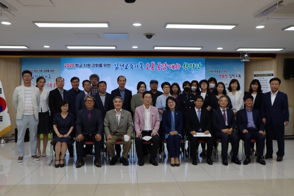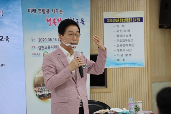 | 경상북도김천교육지원청(교육장 마숙자)는 6월 16일(화) 오후 2시 30분 김천교육지원청 대회의실에서 임종식 경상북도교육감 및 김천 관내 유‧초‧중‧고등학교 교(원)장, 학교운영위원장, 학부모회장, 녹색어머니회, 학생상담자원봉사자연합회 등 각계 대표자 50여명을 초청하여 2020 김천교육 현장소통토론회를 개최하였다.
