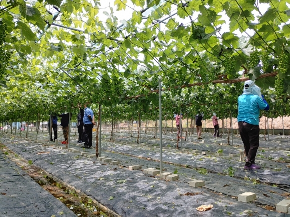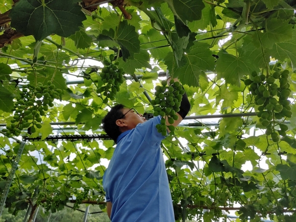 | 김천시 감문면(면장 하동욱) 직원 8명은 6월 17일 감문면 소재 포도재배 농가를 찾아 사랑의 영농지원 활동을 펼쳤다. 도명리, 덕남리에서 실시한 농촌일손돕기에 이어 세 번째다.