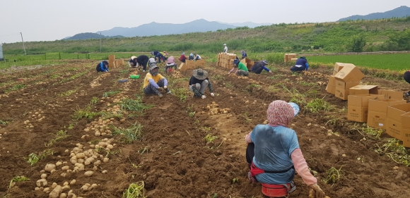 이날 오전 8시부터 개령면 양천리 배모씨의 감자논에서 직원들의 미숙한 손놀림이지만 오전 내 구슬땀을 흠뻑 흘리며 감자 캐기 작업으로 농가에 시름을 덜어 주었다. 농가주 배모씨도 처음 감자캐기 작업을 시작할때는 작업량이 많아서 과연 공무원들이 작업 진척이 얼마나 있을지 걱정을 하였으나, 직원들 모두가 내 집안일이라는 마음으로 열심히 지원해 준 것에 진심으로 감사함을 전했다.