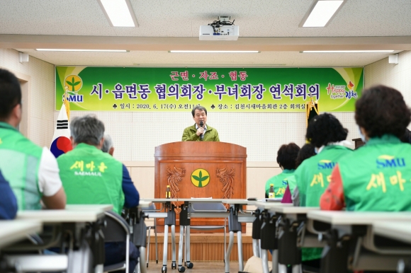 | 김충섭 김천시장은 “상생을 통해 역경을 헤쳐 나가는 지혜를 발휘하는 회원들의 활동은 타의 귀감이 되고 있다. 코로나-19라는 큰 위기 속에서도 항상 앞장서서 이웃을 돌보고 나눔을 실천해 주시는 새마을회 회원들께 늘 감사드린다”고 말했다.