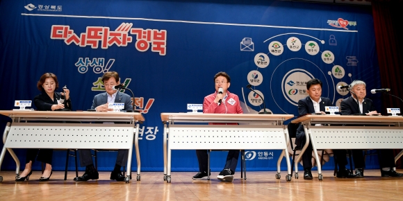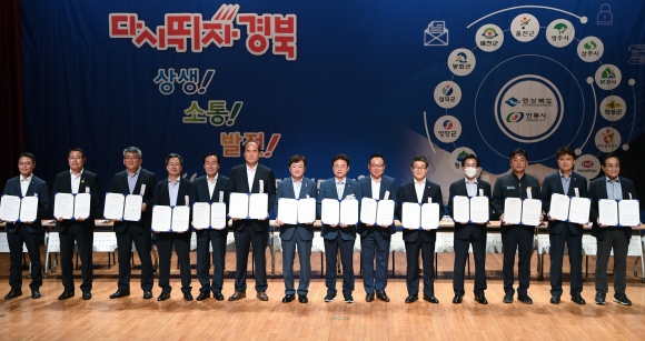 | 이철우 경상북도지사는 18일 안동시청 대동관 낙동홀에서 권영세 안동시장 등 북부권 11개 시장․군수, 범도민추진위원, 한국관광공사, 하나투어 관계자 및 지역의 기관․사회단체장 등 140여명이 참석한 가운데 경북관광 BOOM-UP을 위한 상생협약을 체결하고 ‘다시 뛰자 경북’ 관광 현장간담회를 개최했다.