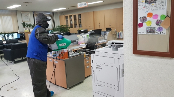 | 김천시는 청사를 방문하는 시민들의 안전을 위해 지난 1월 23일 처음 방역을 실시하고 현재까지 총 19회 방역을 해왔다. 그리고 주 1회 수요일마다 정기적으로 방역을 실시하고 있다.