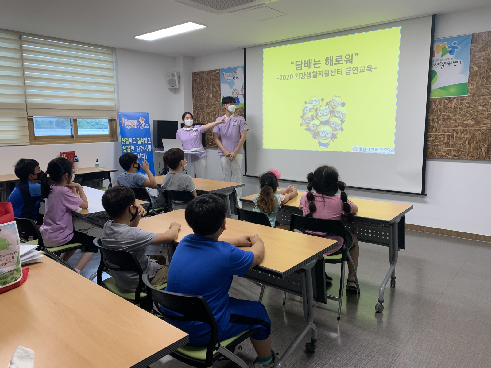| 봉산면 건강생활지원센터에서는 6. 19.(금) 관내 봉계지역아동센터 아동을 대상으로 금연 교육을 실시했다. 김천대학교 간호학과와 함께 준비한 교육은 생활 속 거리두기를 실천하기 위해 저학년, 고학년으로 공간을 분리하고 마스크를 착용한 채 진행되었다.