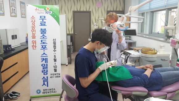 | 김천시 중앙보건지소에서는 코로나-19로 인하여 경제적 어려움을 겪고 있는 소상공인들을 대상으로 치료비 부담을 덜어드리고자 지난 5월부터 무료 불소도포 ․ 스케일링사업을 실시하여 큰 호응을 얻고 있다