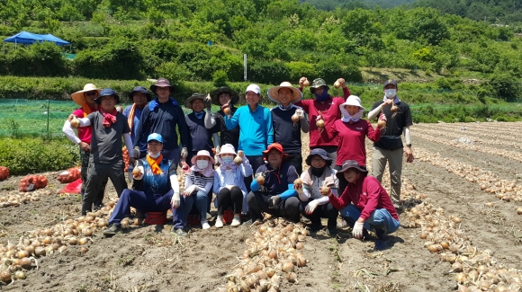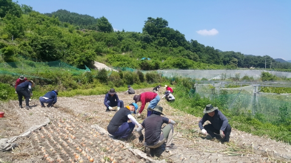 스포츠산업과, 양파농가 찾아 부족한 일손돕기 앞장