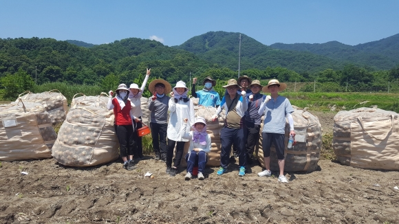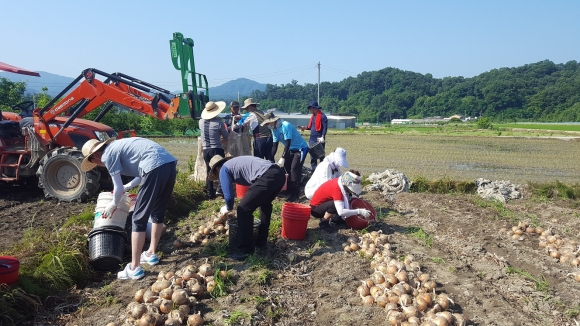 이른 아침부터 양파 수확을 위해 길을 나선 직원들을 따뜻한 손길로 맞이하여 주신 농가주는 “이맘때면 양파 수확을 위해 일꾼을 구하지 못해 애가 타는데 이렇게 공무원들이 도와주시니 감사하다”며 인사 말씀을 전했다. 지난주 내리던 비로 더위가 한 풀 꺾인 듯 했으나 이날만큼은 뜨거운 햇살로 양파 수확 현장의 열기를 더욱 높였다. 3,000㎡에서 캐낸 양파를 포대에 담는 작업에 구슬땀을 흘렸지만 누구 한 명 힘들다는 소리 없이 묵묵히 작업을 이어나갔다. 작업 효율을 높이기 위해 햇빛 가리개 작업 모자와 앉은뱅이 의자를 챙겨갔고 간식과 생수, 음료는 따로 준비 해 농가주의 부담을 덜었다.