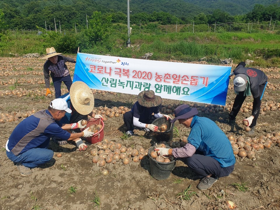 이날 산림녹지과장을 비롯한 직원 20여명이 참여하여 구성면 송죽리 소재 양파농가의 양파수확 작업을 도우며 코로나19 장기화로 인해 일손부족 및 위기에 처한 농가에 작은 손길을 보태어 주었다.