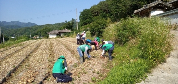 | 김천시 증산면 새마을회(회장 임상훈)에서는 6월 22일, 코로나-19 사태 장기화로 외국인 노동자 유입이 어려워지면서, 일손 구하기가 더욱 어려워져 곤란에 처한 평촌리 양파 재배 농가를 지원하였다. 평촌리 171번지 일원에서 실시된 농촌일손돕기에 새마을회 회원 10여명이 참여하여, 뙤약볕 아래에서 구슬땀을 흘리며 양파수확을 지원하였다.