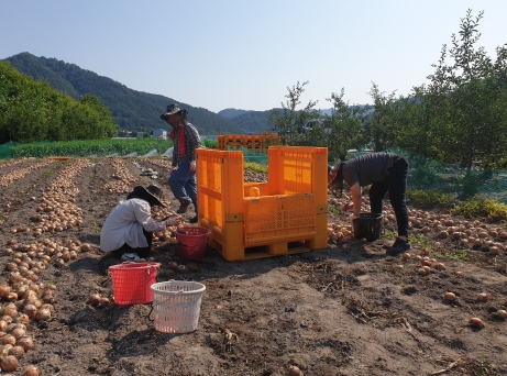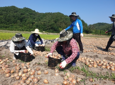 | 대덕면사무소의 직원 10여명은 지난 6월 22일 일손이 부족한 농가를 방문해 제2차 농촌일손돕기 봉사활동을 진행했다. 올해는 코로나19의 영향으로 다른 때보다 일손이 여실히 부족한 상황이었다. 이날 직원들은 양파를 수확하기 위해 1,500㎡ 규모의 밭에서 작업을 진행했다. 섭씨 33도를 웃도는 폭염속에서 대덕면 직원들은 구슬땀과 바꾼 양파가 농가에 조금이라도 도움이 될 수 있다는 생각에 기쁜 마음으로 양파를 수확할 수 있었다.