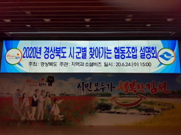 | 김천시(시장 김충섭)는 6. 24(수) 김천시청 3층 강당에서 협동조합 설립‧운영에 관심 있는 청소년, 대학생, 일반 주민등을 대상으로 협동조합의 이해 증진과 설립절차에 관한 도움을 주기 위해‘경상북도 시‧군별 찾아가는 협동조합 설명회’를 개최하였다.