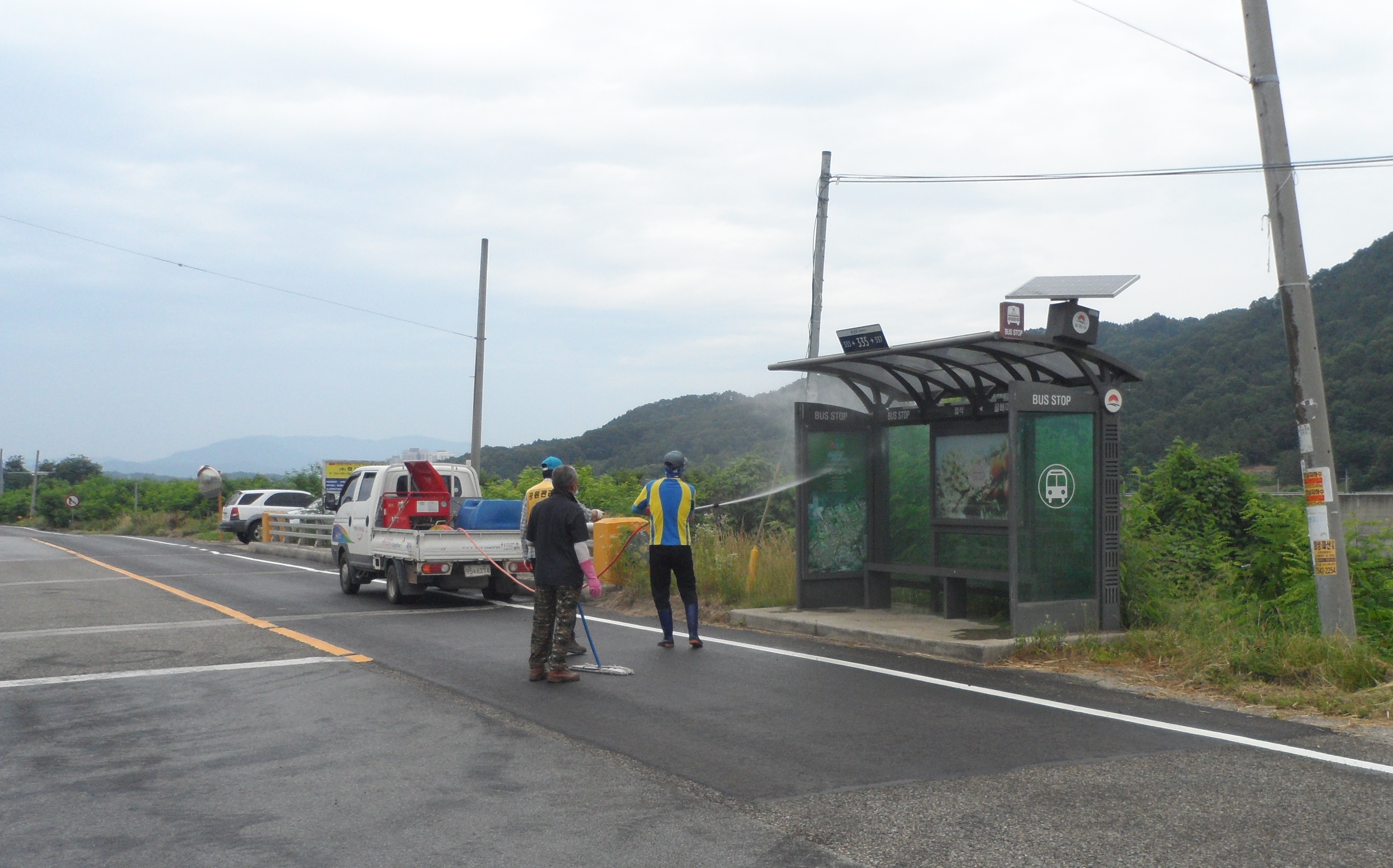 농소면 버스승강장 방역 및 환경정비 활동 펼쳐