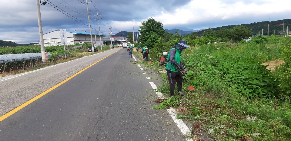 | 대신동 새마을협의회 회원 30여명은 6월 26일(금) 대홍맨션 ~ 개령면 경계 일대의 풀베기 작업과 환경정화 활동을 실시하였다. 농사일로 바쁜 시기임에도 불구하고 회원들은 새벽 5시부터 모여 도로변 풀베기, 잡초제거 및 쓰레기 수거활동에 최선을 다했다.