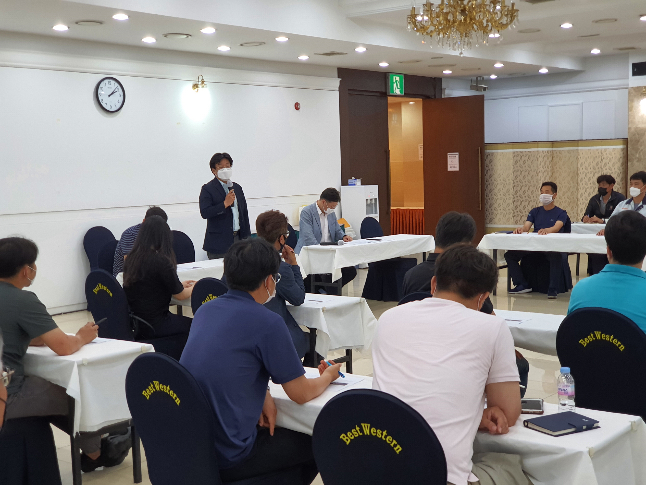 또한, 장외영향평가서 및 위해관리계획서 통합제출, 도급 변경신고 등 화학물질 취급시설의 안전관리에 관한 개정된 법률에 대해 설명하고, 관련 규제에 대한 고충과 합리적인 개선방안에 대한 의견을 나누었으며, 아울러, 다가올 장마철·휴가철을 대비하여 유해화학물질 취급시설의 심층적 안전관리 강화방안 추진과 기업체의 안전진단 수검요령에 대한 교육을 병행하였으며, 더불어 코로나-19와 관련하여 기업체의 애로사항을 청취하고 격려했다.