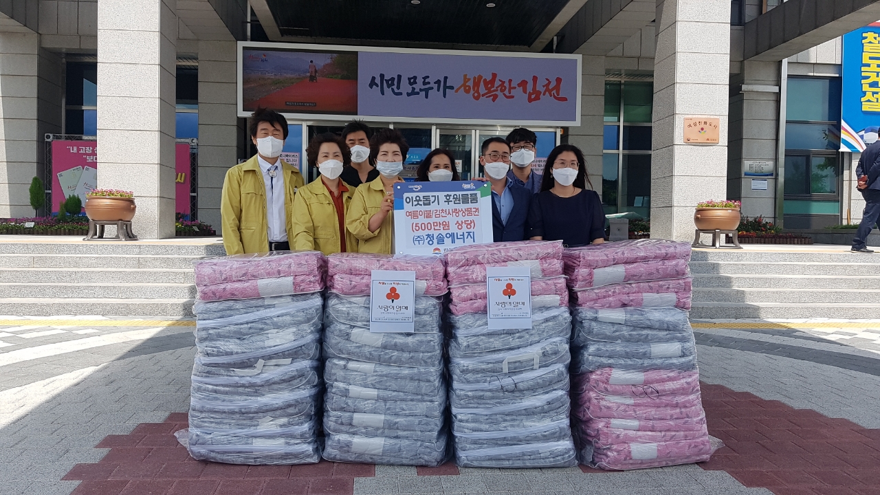 김천시 자산동에 소재한 ㈜청솔은 신재생에너지 태양광에 관련된 총괄업무를 시행하는 태양광발전개발전문기업으로, 올해만 2회에 걸쳐 총 800장의 마스크를 기탁하는 등 저소득 소외이웃을 위해 꾸준히 나눔을 실천하고 있다. |