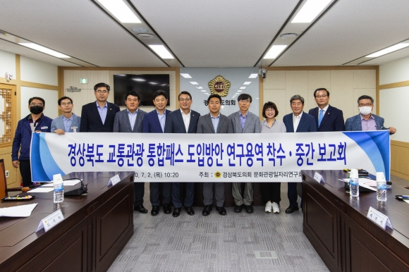 | 경상북도의회 의원연구단체인「문화관광일자리연구회」(대표 조주홍 의원)는 7월 2일(목) 도의회에서 2020년 의원연구단체 정책연구용역 과제인 ‘경상북도 교통관광통합패스 도입방안에 관한 연구’라는 주제로 착수․중간보고회를 개최했다. 이번 보고회는 지난 5월 14일「문화관광일자리연구회」에서 경북대학교 산학협력단에 발주한 연구용역의 향후방향과 추진 상황에 대한 의견을 교환하기 위해 마련되었다.