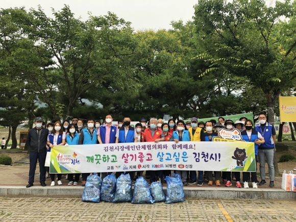 | 김천시 장애인단체(5개소)는 30일(화) 50여명의 회원들과 「Happy Together 김천」운동 실천을 위해 강변공원 일대 환경정화활동 캠페인을 전개했다.