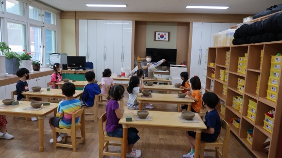 | 김천중앙초등학교병설유치원(원장 백승호)은 6월 25일 도자기 만들기를 하였다. 현재 코로나19로 인해 야외활동이나 견학을 갈 수 있는 기회가 제한됨에 따라 우리 아이들이 다양한 체험을 하는 것에 어려움이 있으므로 유치원 내에서 도자기 만들기를 하였다.