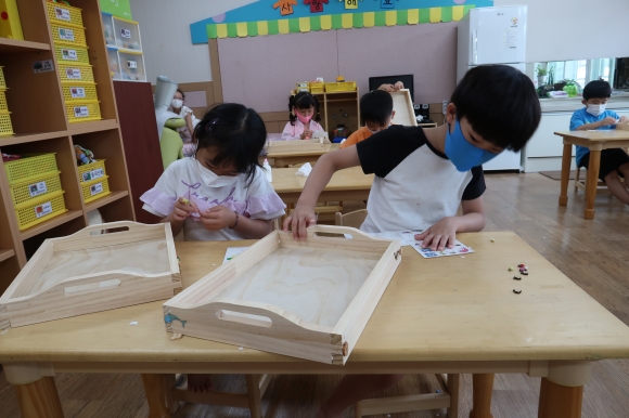 이 날 유아들은 목공체험에 직접 참여를 하여 목재를 활용한 실생활 용품인 트레이를 만들어 보았다. 우리 유아들이 단계별 수준에 맞게 체험활동을 하도록 계획하여 안전하고 즐거운 경험을 할 수 있었다.