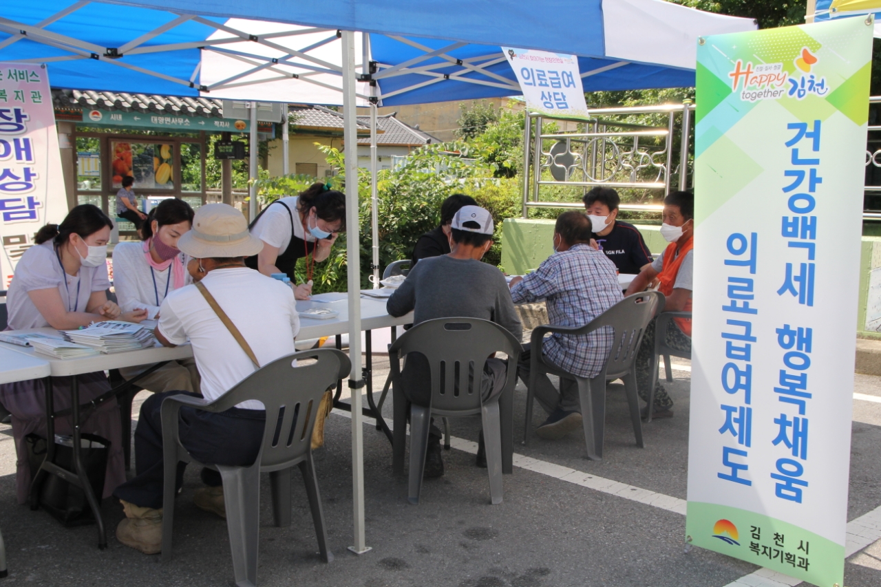 지난 2008년부터 운영된 〃김천시 찾아가는 현장민원실〃은 김천시청(열린민원과, 기획예산실, 건축디자인과, 복지기획과, 보건소, 일자리경제과, 농업기술센터), 김천세무서, 한국도로공사, 한국국토정보공사, 김천시장애인종합복지관, (사)경북지체장애인협회김천시지부, 김천의료원, 김천시노인종합복지관, 김천시 종합자원봉사센터, 전기안전공사, 가스안전공사 기업체에서도 참여하여 민-관이 협력하여 시민들에게 다양한 행정·민간서비스 제공을 위해 노력하고, 읍·면·동지역의 주민에게 불편사항을 해소 해주고, happy together 운동에 동참하여 시민모두가 행복한 김천 조성을 위하여 운영되고 있다.