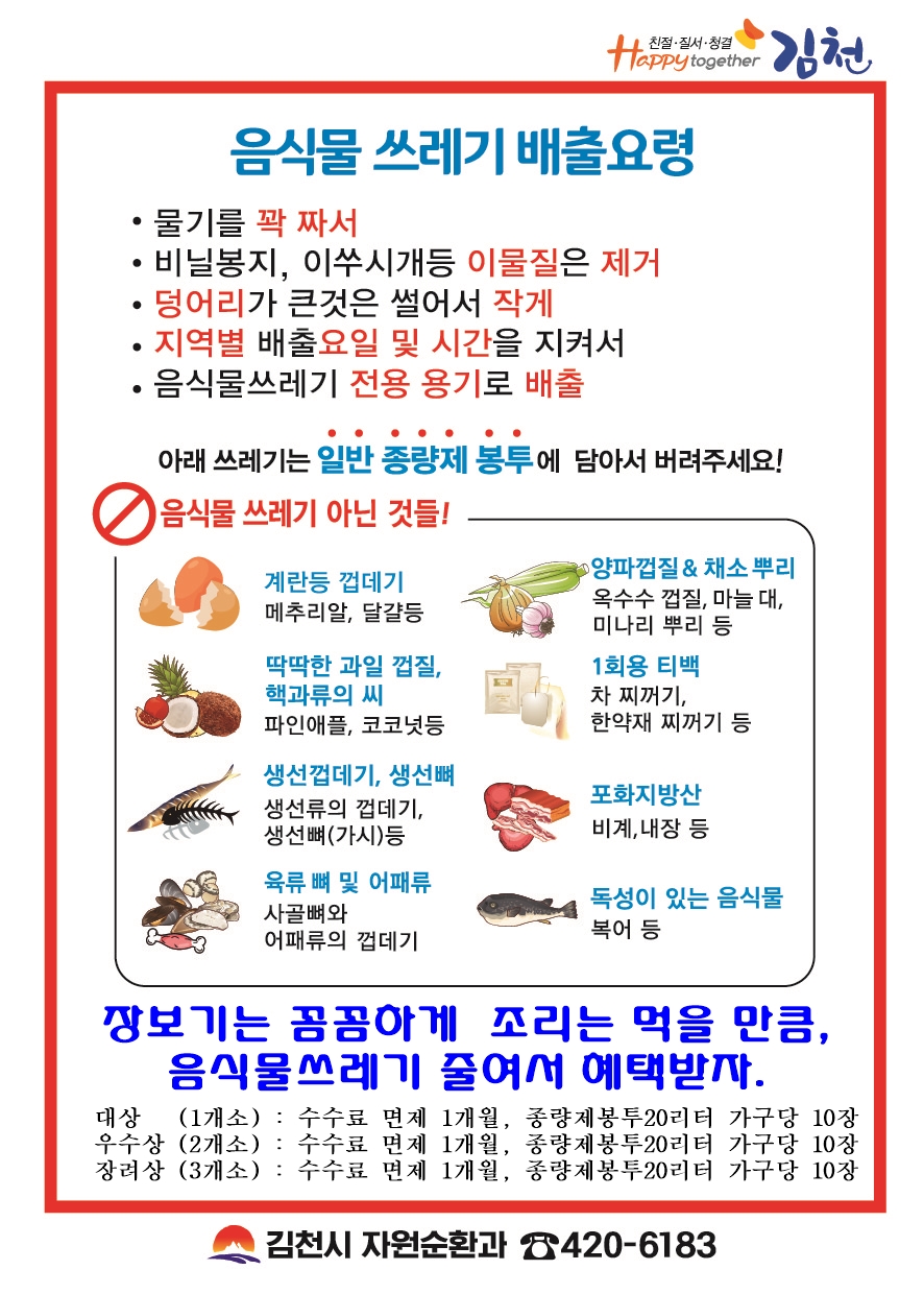 김천시 음식물쓰레기 줄이기 경진대회로 감량효과 기대