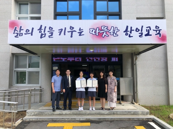 | 한일여자중학교(교장 이자명)는 6월 15일(월) 통일부, 서울시, 경기도가 공동으로 주최한 6.15 남북공동선언 20주년 기념 대국민 이벤트 ‘평화 챌린지’에서 “휴전선 너머로”라는 영상을 발표하여 최우수 영상으로 선정되었다.
