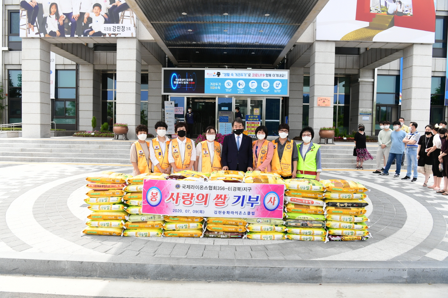 | 송화라이온스클럽(회장 김혜영)은 지난 9일 김천시청 전정에서 사랑의 쌀 전달식을 가졌다.
