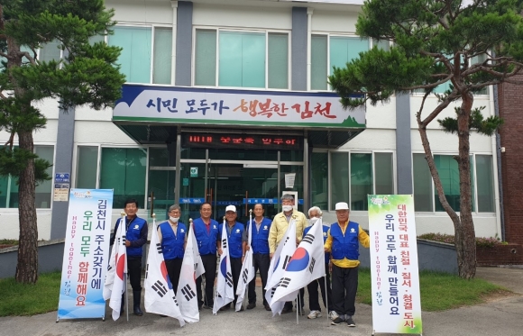 | 김천시 지레면 바르게살기운동협의회(위원장 김일섭)는 지난 7월 10일 다가오는 제72주년 제헌절을 맞아 바르게살기 회원 10여명이 참여한 가운데 장터길 및 부항댐 방면 도로변에 태극기 달기를 실시했다.