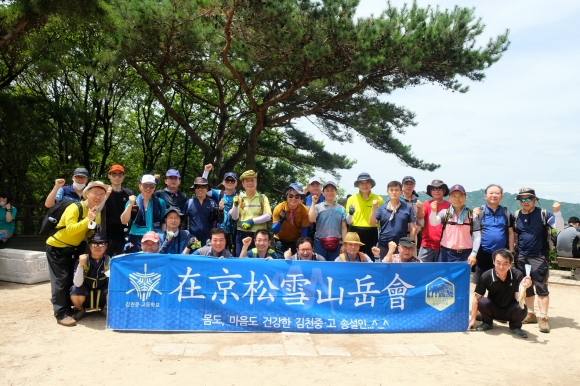 | 재경송설동창회(회장 김홍근) 산악회는 7월 11일(토) 청계산에서 송설동문 40여명이 모인 가운데 정기산행을 개최했다. 7월 정기산행은 사회 각계각층에서 활동 중인 회원들이 교류할 수 있는 화합의 장으로 마련이 되었다. 특히 서울사무소에서는 송설 출신 직원(김성훈, 송설 63회)이 참석하여 김천시의 위상을 드높이고 있는 수도권 내 단체와의 유대를 단단히 했다.
