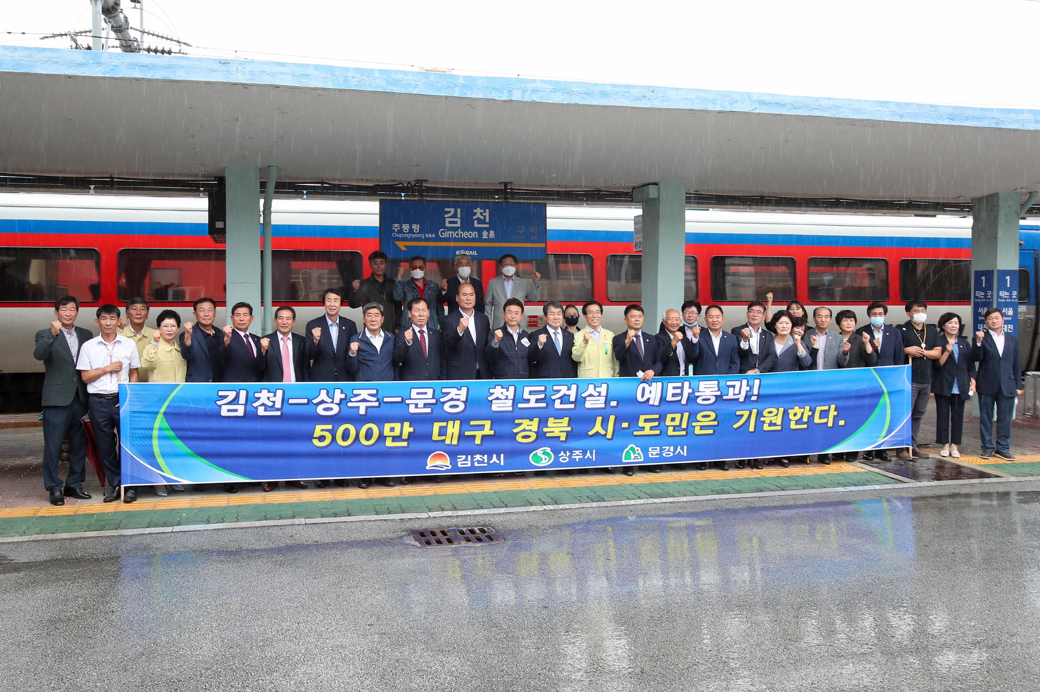 이날 문경~김천 간 열차 탑승 행사는 고우현 의장을 비롯해 김진욱·남영숙·나기보 지역구 의원과 이철우 경북도지사, 문경·상주·김천시장 등 지역 주요 관계자들이 함께해 문경~김천 내륙철도건설의 필요성에 대해 논의하고 예타 통과를 촉구했다.
