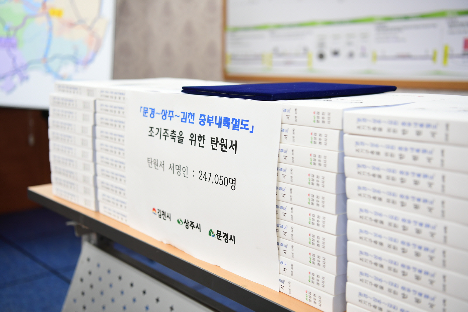 지난 7월 13일 오후1시 POST 코로나 대응 민생·경제 위기극복 및 재도약을 위한 「다시 뛰자 경북」 현장 간담회를 위해 문경시를 방문한 후 김천시 방문 차 경북선 철도를 이용하여 김천역에 도착한 이철우 경상북도지사에게 3개 시민의 의지를 담은 탄원서를 김천·상주·문경시장이 함께 전달하고, 김천~문경간 철도가 조기건설 될 수 있도록 경상북도가 앞장서 달라고 요구하였다.