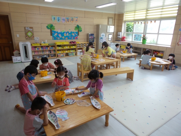 도자기 접시에 자신의 생각과 느낌을 여러 가지 다양한 모양으로 그림을 표현한 후 도자기전용 물감으로 마음이 가는대로 붓을 움직여 색칠 하는 핸드페인팅 “저는 꽃 그릴래요, 선생님 동물 그려도 되요 ”라고 하는 등 세상에서 하나뿐인 나만의 도자기가 탄생하였다. 체험의 과정은 눈과 손의 협응력을 기르고, 집중력, 상상력, 물감을 통해 시각과 촉각을 통해 창의적인 예술 활동을 경험하는 시간이었다. |