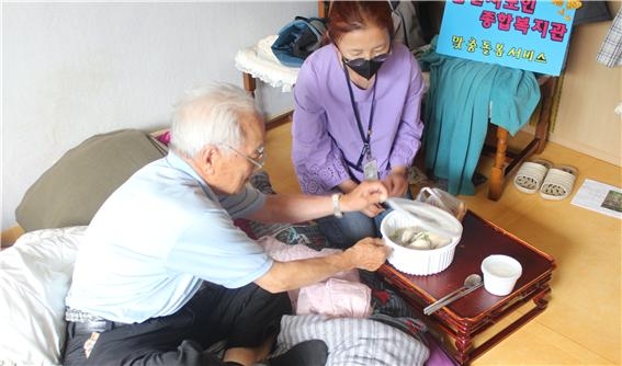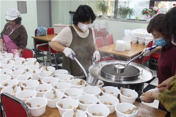 이날 노인맞춤돌봄서비스 담당 사회복지사 및 생활지원사들은 이른 아침부터 모여 경로식당에서 정성껏 끓인 삼계탕을 포장하였으며, 각 지역 생활지원사를 통해 농소, 조마, 봉산, 증산, 평화남산, 양금, 자산동에 계시는 대상자 어르신들께 삼계탕 전달과 함께 안부를 살펴 훈훈함은 더했다.