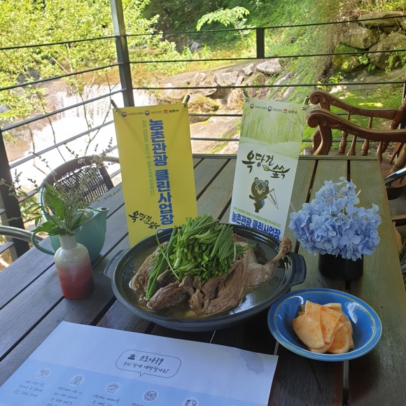 옥당걸숲속 농가맛집의 대표 메뉴인 한방 오리백숙 한상차림은 4인 기준 100,000원으로 김천시 특산물을 활용한 제철 음식이 코스로 제공된다. 눈앞에 흐르는 청정 계곡수 소리와 울창한 숲속에서 편안하게 휴양을 겸한 고품격 식사를 즐기다보면, 힐링이 되며 주변 관광지로는 부항댐과 짚와이어, 출렁다리, 물소리생태숲 등 다양한 볼거리, 휴식거리, 먹거리 등 관광코스도 좋다. 서범석 농업기술센터 소장은 “김천시 로컬푸드를 활용한 맛있으면서도 위생적인 음식과 사업장 관리에 철저를 당부하며, 농촌교육농장 마고촌과도 연계하여 관광이 활성화 되어 농가에 많은 도움이 되길 바란다”고 전하고 농촌관광 클린사업장 지원과 현장 모니터링, 철저한 예방수칙에 대한 지도 점검 등 사후관리에도 만전을 기하겠다고 밝혔다.