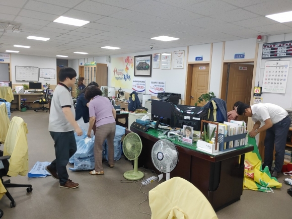 | 농소면사무소는 김천시정 비전인 「Happy together 김천」청결운동을 실현하고자 지난 15일‘사무실 정리정돈의 날’을 지정하여 추진하였다.