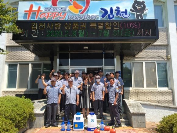 한편, 백선주 감천면장은 “무덥고 바쁜 영농철임에도 불구하고 의용소방대원들이 한자리에 모여 지역주민들을 위해 소방훈련교육을 받고 경로당 방역활동까지 해줘서 감사드린다. 코로나19가 종식될 때까지 거리두기 생활화를 유지하고 감염병 확산 방지를 위해 지속적으로 노력해주길 바란다.”고 당부하였다.