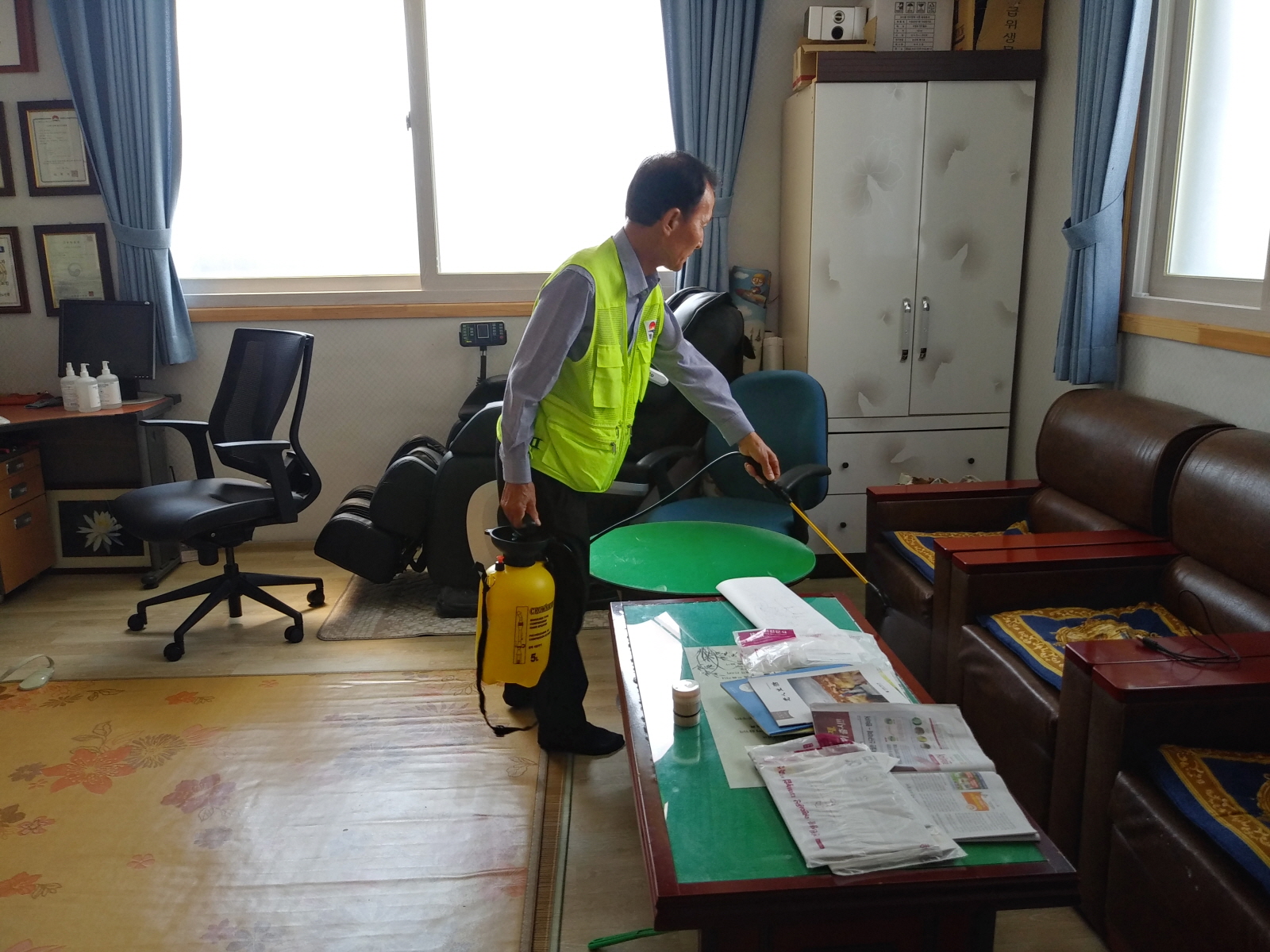| 지좌동행정복지센터에서는 코로나–19로 장기간 폐쇄되어 있던 노인여가시설인 경로당이 7.20일(월)부터 개방함에 따른 사전예방대책으로 지좌동 관내 17개 경로당에 대하여 실·내외 방역소독 및 청소를 17일(금) 실시하였다. 장기간 지속된 코로나-19로 인하여 어르신들의 주 여가공간인 경로당의 장기간 폐쇄로 인한 어르신들의 고독감, 우울감 등을 해소하고 사회적 거리두기 1단계를 적용한 운영방안인 비대면 서비스, 소규모(10명 이내) 실내 프로그램 운영, 원칙적 경로당 식사 제한 권고등을 철저히 지킬 수 있도록 하여 관내 어르신들이 안락한 시설에서 고독감 및 우울감을 해소할 수 있고 즐겁고 활기찬 생활여가시설을 이용하는데 불편함이 없도록 하고자 실시하였다. 또한 어르신을 코로나로부터 안전하게 시설을 이용할 수 있도록 손소독제, 비접촉식체온계, 소독용 물티슈, 손 세정제등을 배부하여 감염병으로 부터 안전할 수 있도록 방역물품을 비치하였다.