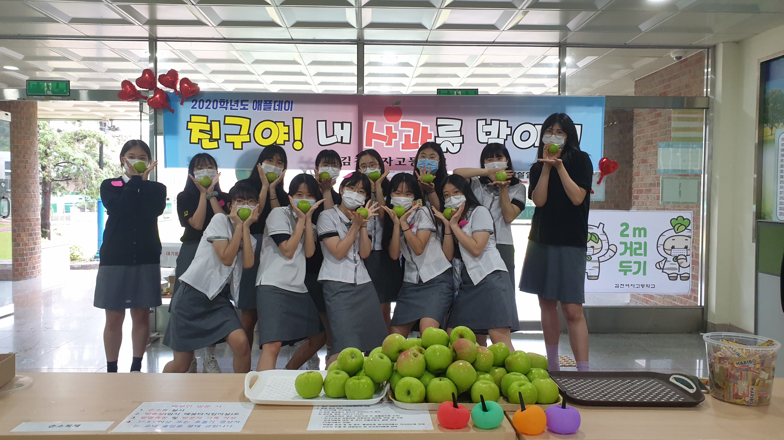 | 김천여자고등학교(교장 안중열)는 7월 25일(목) 학교폭력 예방 및 학생들의 갈등 해결을 위한 애플(Apple)데이를 실시하였다. 이번 행사를 통해 평소 미안한 마음을 갖고 있는 친구들에게 사과의 마음을 전할 수 있는 기회를 마련하였다.