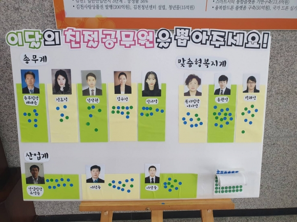 | 어모면(면장 이병헌)에서는 Happy together 김천운동의 일환으로 ‘이달의 친절공무원’을 선정하고 있다.