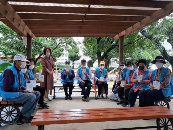 매일 이른 아침 학교 주변을 깨끗하게 청소해 주시고 교통 도우미 활동을 하시며 아이들을 위해 애써 주시는 어르신들을 위해 더운 여름 시원한 바람과 함께 잘 이겨 내시라고 손선풍기를 전달해 드렸다.