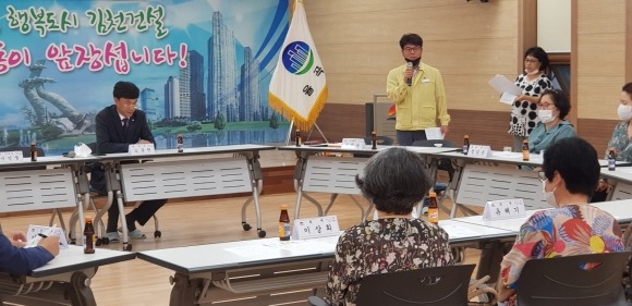 두 달 만에 열린 이날 회의는 노봉천 율곡동분회장, 이우문 율곡동장을 비롯해 회원 20여명이 참석한 가운데 하반기 정기인사로 전보된 직원들과 회원들 간의 인사로 시작되었고, 율곡동장의 코로나19 취약계층 지원 사업 진행 현황 브리핑으로 이어졌다. 특히 확대 시행중인 소상공인 지원 사업(카드수수료‧전기요금지원 등)과 코로나19 사회적 거리두기 등 시정 주요 현안사항을 설명하고 앞으로 활동방향에 대하여 토의 시간을 가졌다.
