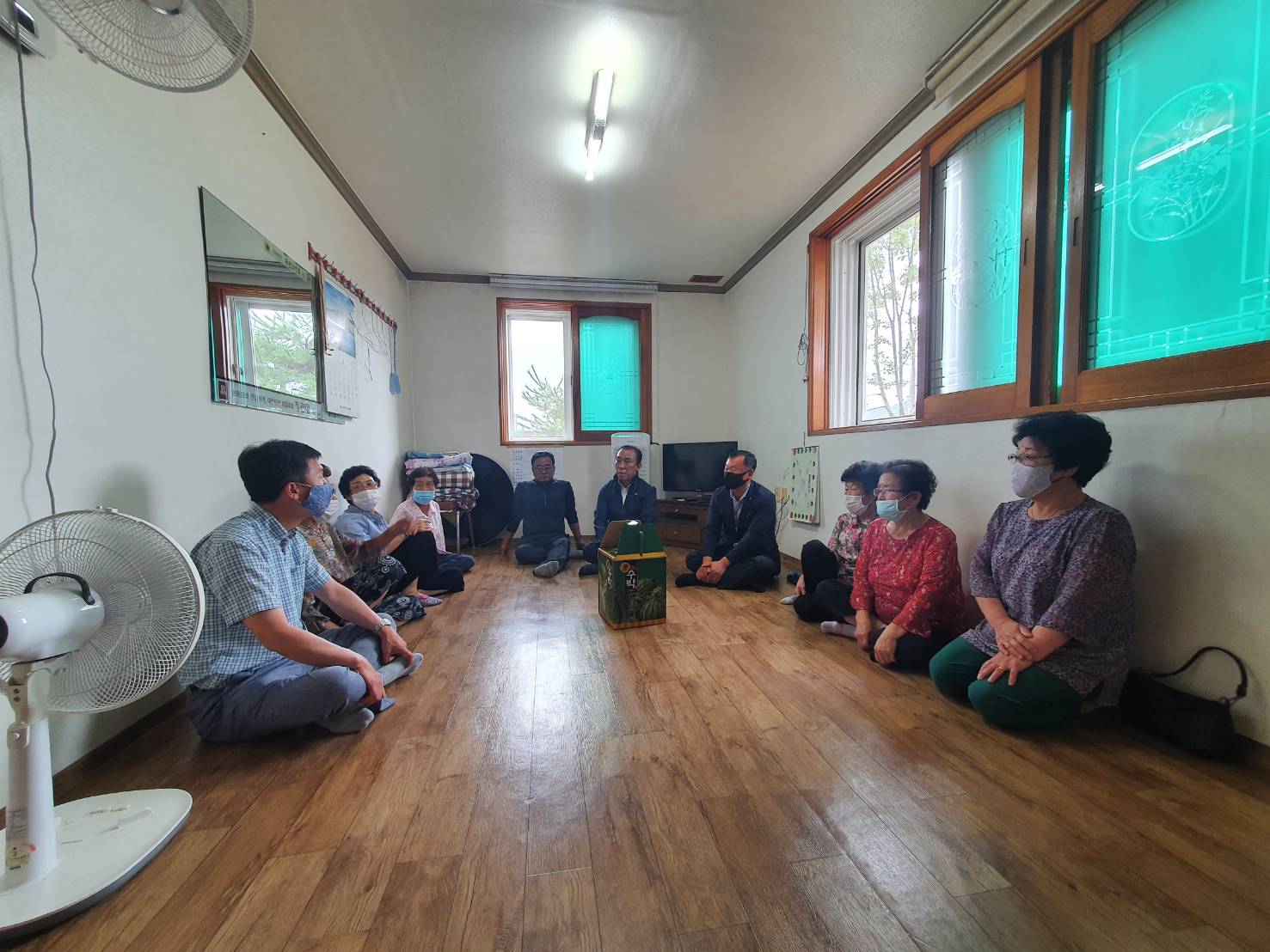 이번 방문에는 이병헌 면장을 비롯하여 진기상 시의원이 함께 자리하여, 장기화되고 있는 코로나19로 인해, 몸과 마음이 지친 어르신들의 건강을 확인하고 경로당의 각종 시설 점검과 불편사항을 살펴봤다.